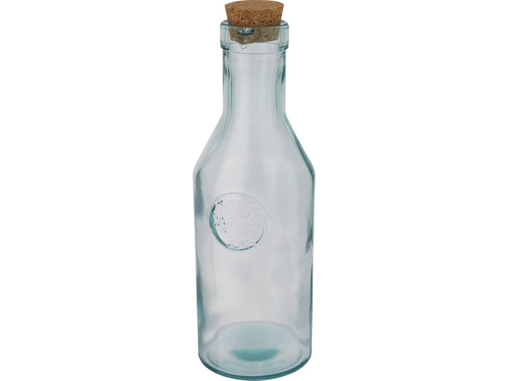 Стеклянный графин объемом 1000 мл с крышкой из пробки, изготовленный из 100% переработанного стекла, с эксклюзивным дизайном. Этот экологически устойчивый и модный графин идеально подходит для подачи воды, соков, масла или уксуса. Графин изготовлен из переработанных стеклянных бутылок. На изготовление переработанного стекла затрачивается меньше энергии, сырья и добавок, чем на изготовление традиционного стекла. Графин можно мыть в посудомоечной машине.