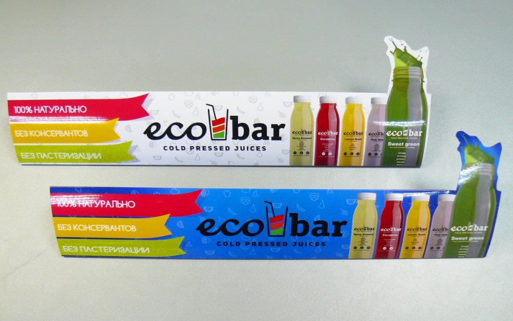 Еще одним важным плюсом можно считать хорошую сочетаемость шелфтокеров с другими полиграфическими изделиями. Так печать шелфтокеров в комплекте с воблерами увеличит зону их воздействия на потенциальных покупателей и усилит их работу. Правда сделать оба типа рекламы придется в едином стиле. В идеале — с одновременным изготовлением в одной типографии полного цикла, например, в компании Экспресс.